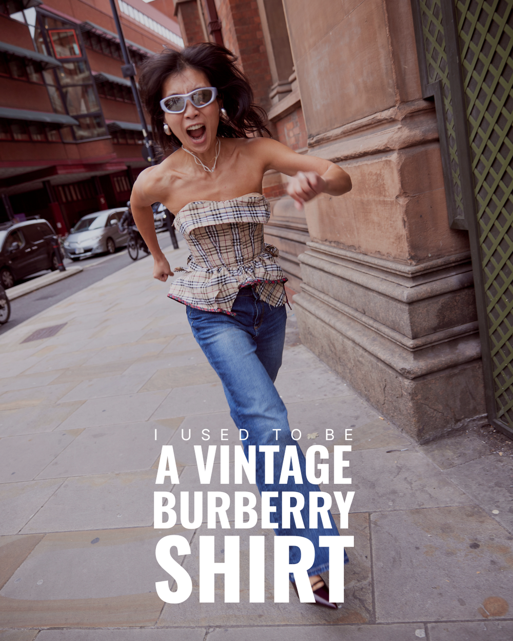• A classic Burberry trench reimagined into a modern, asymmetric coat, blending timeless tailoring with contemporary flair.